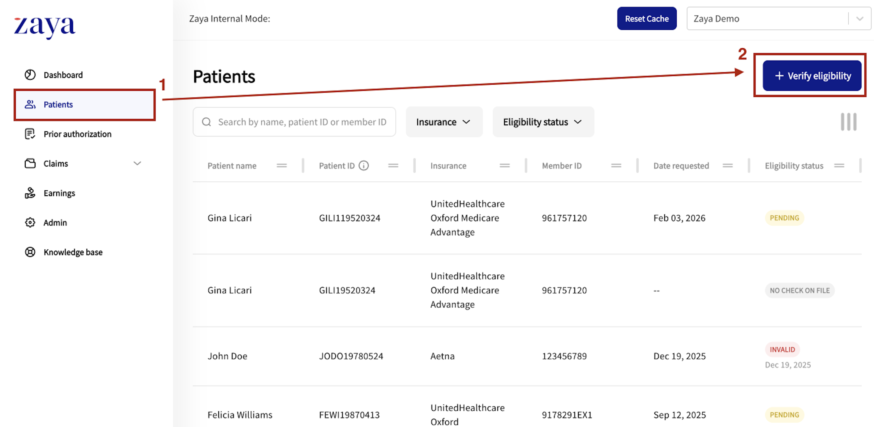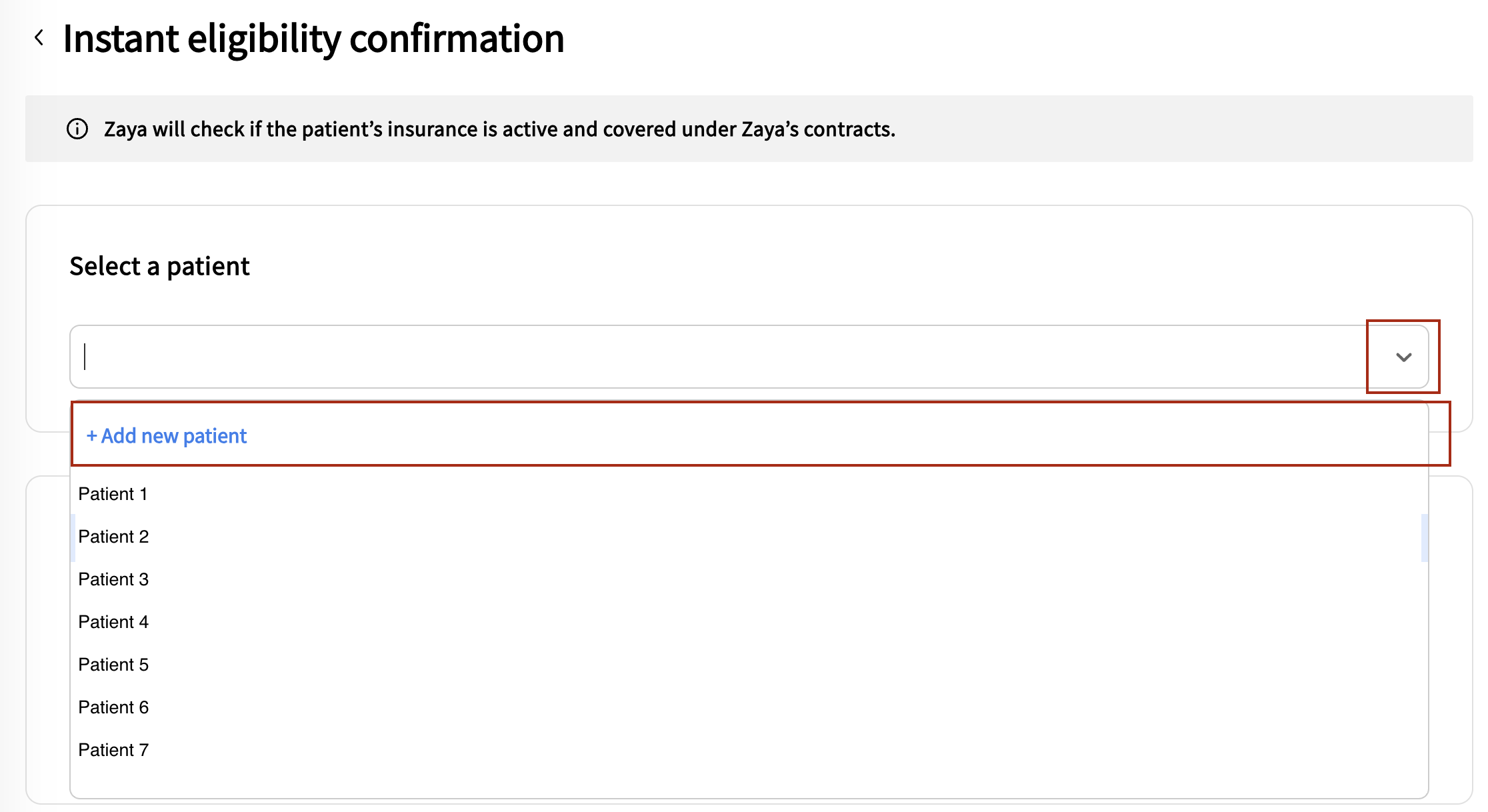 Use the Zaya portal to submit patients eligibility checks and benefits review. This confirms coverage before claims are submitted.