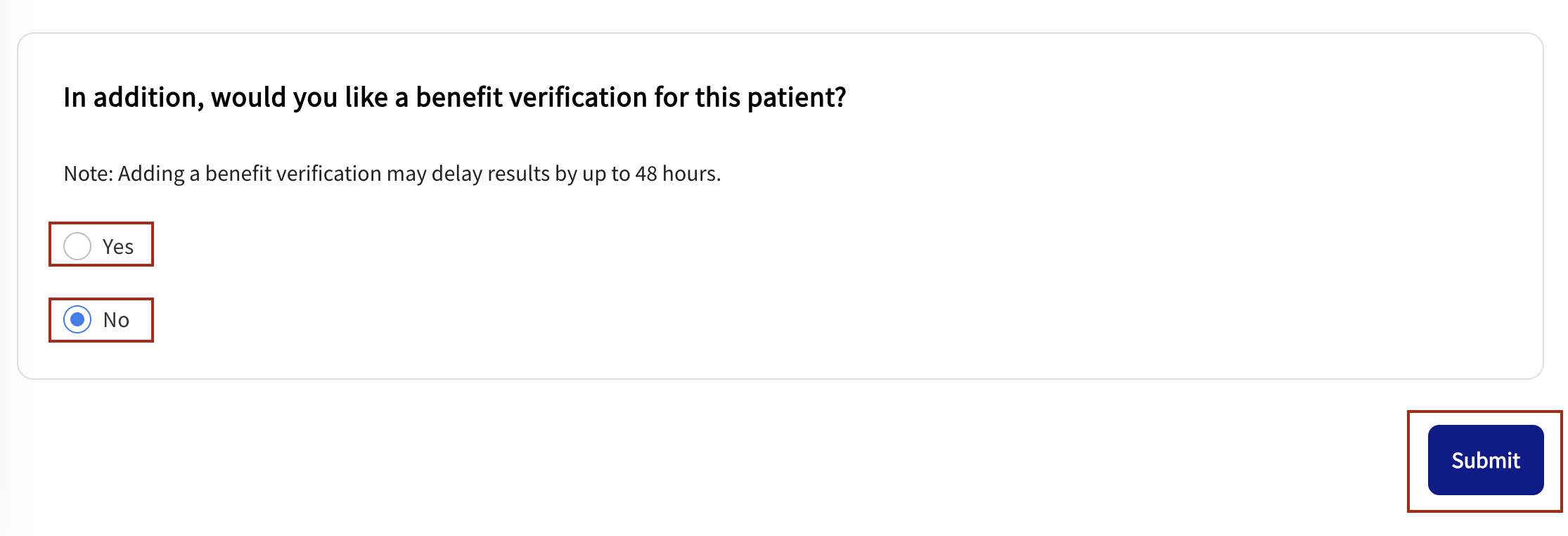 Next, select whether you would like to add a benefit verification for this patient