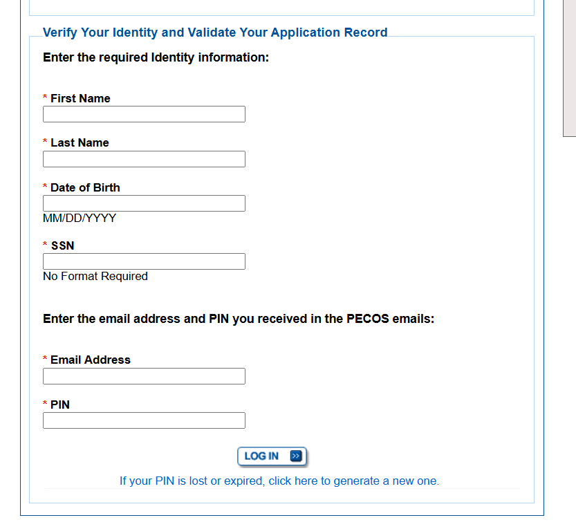- Click Accept and log in using your PECOS credentials.
